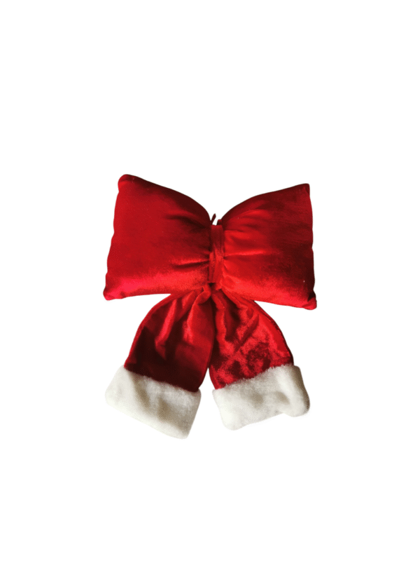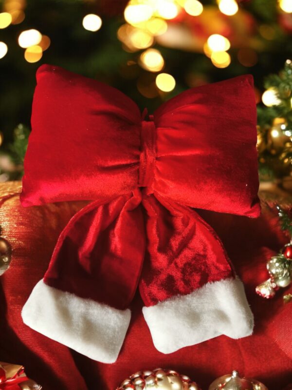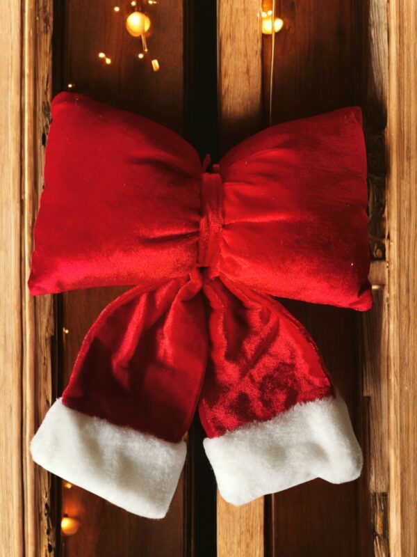 Piękna, dekoracyjna kokarda, który wprowadzi do Twojego domu magiczny, świąteczny klimat. Wykonana z miłego w dotyku materiału z delikatnym wypełnieniem, prezentuje się elegancko i efektownie zarówno na drzwiach wejściowych, jak i na choince czy w świątecznych aranżacjach wnętrza.