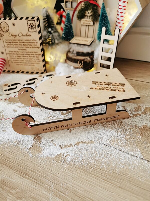 Te urocze, drewniane sanki zostały stworzone z myślą o świątecznych przygodach Elfa Psotnika. Dzięki nim Wasz elf może przybyć do dziecka w jeszcze bardziej wyjątkowy sposób, wjeżdżając prosto do Waszego domu z Bieguna Północnego.