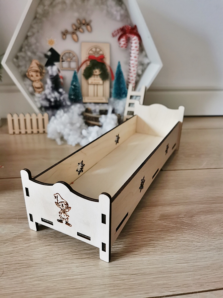 Nawet najbardziej zapracowane elfy potrzebują chwili wytchnienia po całonocnych psotach i figlach. To urocze łóżeczko zostało stworzone specjalnie z myślą o nich – małe, przytulne i pełne świątecznego uroku. Wykonane z drewnianej sklejki dzięki czemu jest trwałe i bezpieczne dla małych lokatorów z magicznego świata. Prosty, a zarazem klimatyczny design sprawia, że łóżko świetnie wpisuje się w świąteczne aranżacje oraz daje elfom wyjątkowe miejsce odpoczynku. Warto wyposażyć łóżko dla elfa pościelą, kocykiem czy poduszeczką, aby stworzyć jeszcze bardziej przytulny klimat.