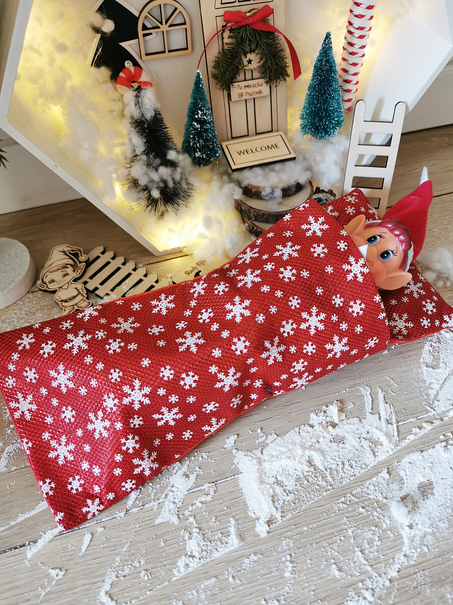Śpiworek posiada świąteczny motyw i staranne wykończenie, dzięki czemu doskonale wpisuje się w bożonarodzeniowy klimat. To świetny dodatek do codziennych zabaw oraz fantastyczny element dekoracyjny – idealny pomysł na prezent lub uzupełnienie kolekcji akcesoriów dla elfa.
